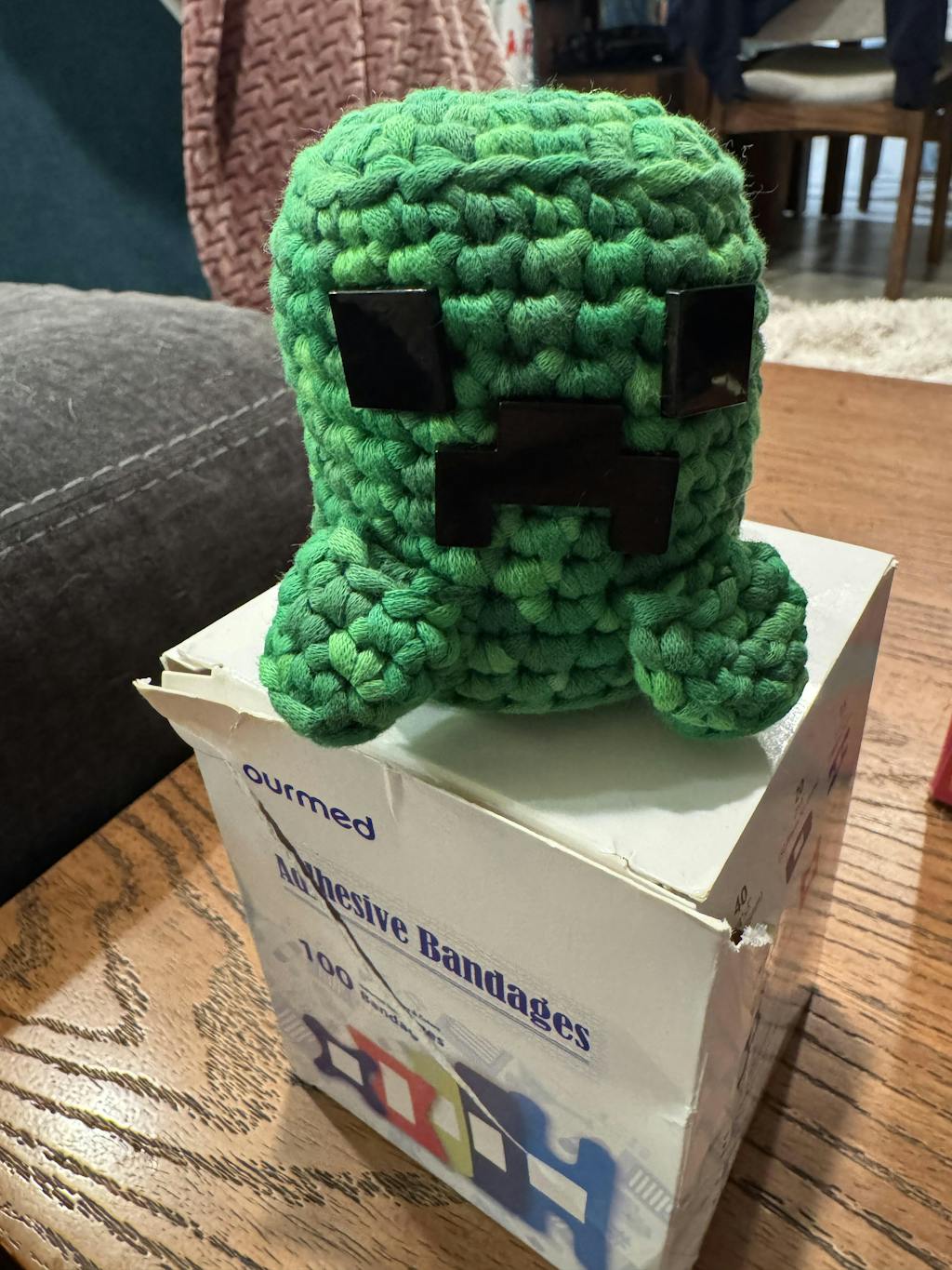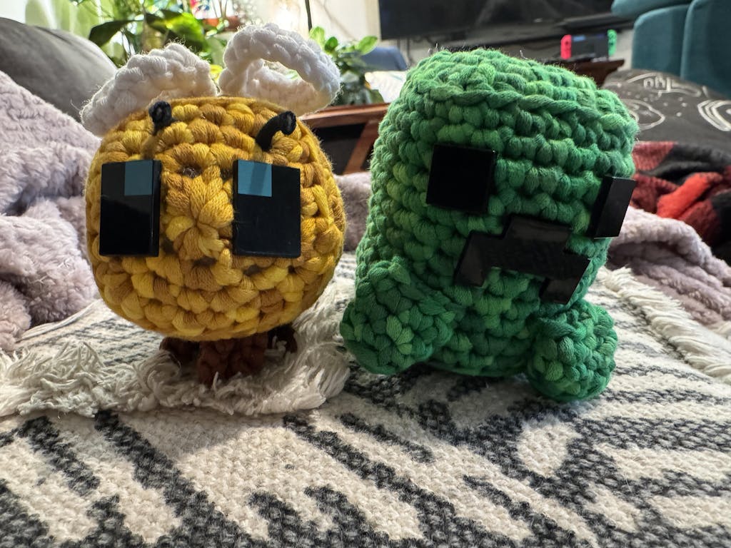 This was such a fun project to do this was my 3rd Wooble and I’m hoping to get Emilio or the haunted house bundle. He turned out so cute I kept messing up the legs but eventually he turned out adorable. I don’t play Minecraft much but I love the game, love woobles, and love crocheting and when I saw the one creeper left in a learning express I knew I needed him in my life. He turned out so cute and I love him. I already made The Creeper, Howard the yeti, and pink Fred the dinosaur and I love how they all turned out!
