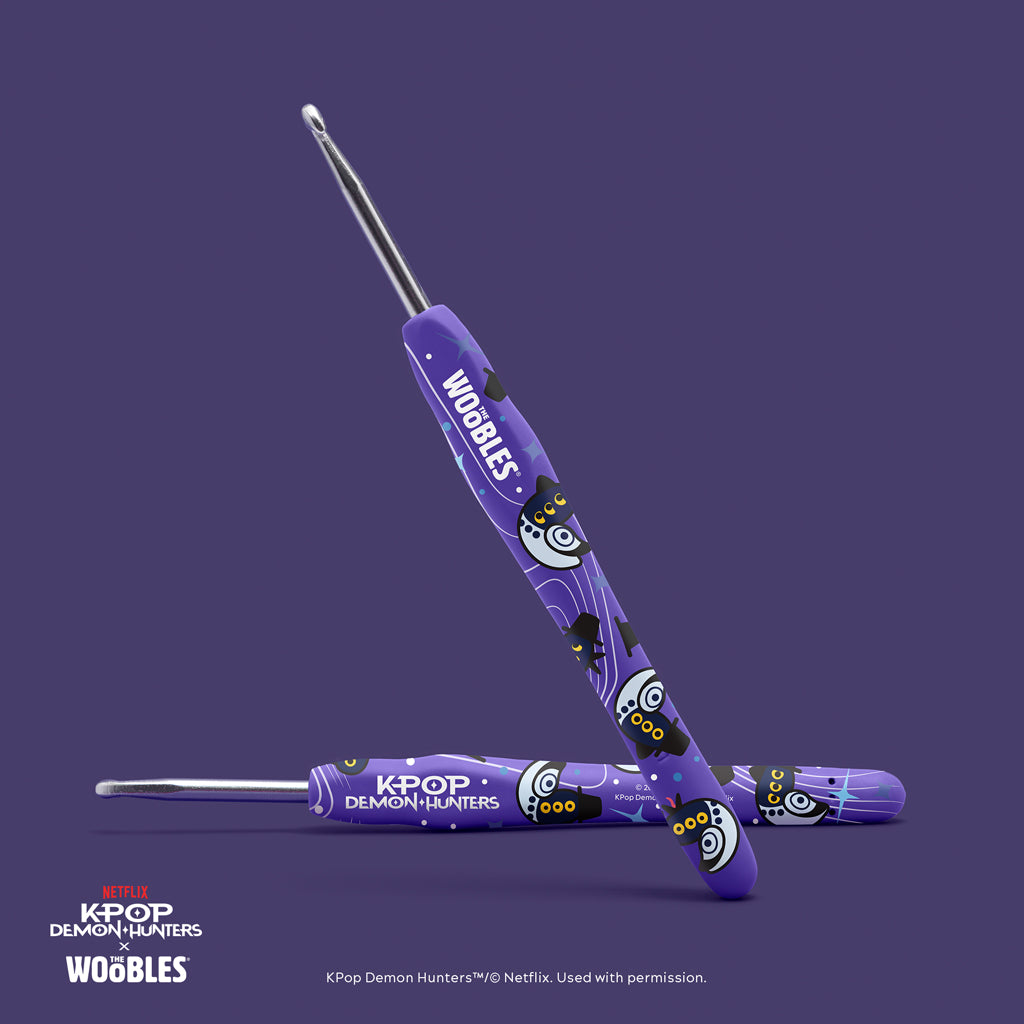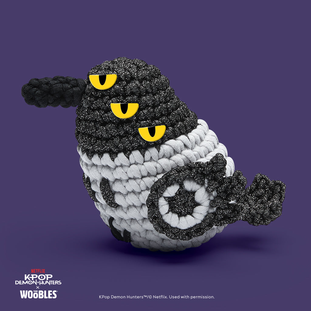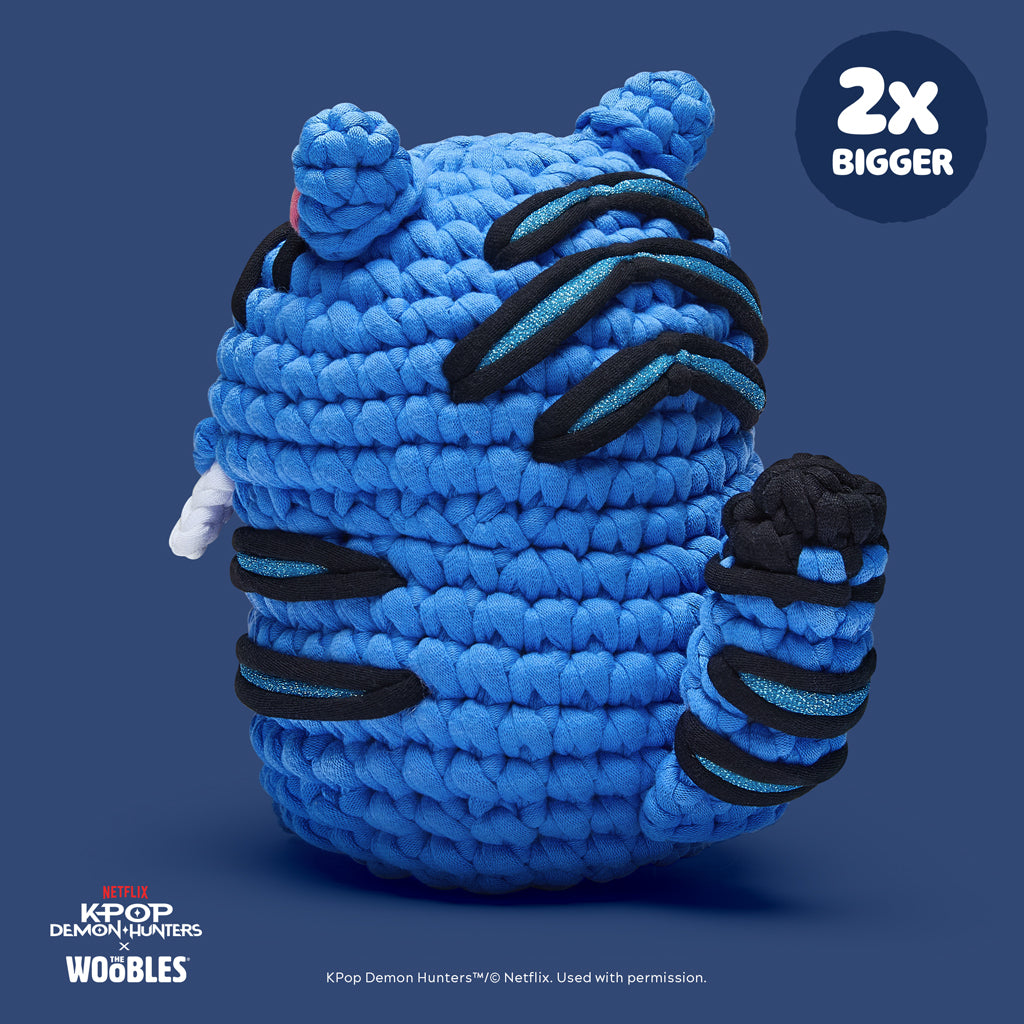 With those fabulous feathers and six skeptical eyes, Sussie the Magpie literally brings the glitter. Luckily, you’ll have no problem Suss-ing it all out with the help of our Easy Peasy Yarn™, hat-tractive custom hook, and step-by-step videos. And of course since Derpy Tiger is so much bigger, using our larger-than-life Easy Peasy Extra Squeezy™ Yarn is a total no-brainer. Its lovably large size—and equally oversized hook—is perfect for wooblin’ all those Derpy details sans snarls or snags. So whether you’re stanning Saja Boys or HUNTR/X, let’s wooble our way to #1 bringing these KPop Demon Hunters Magical Messengers to life!