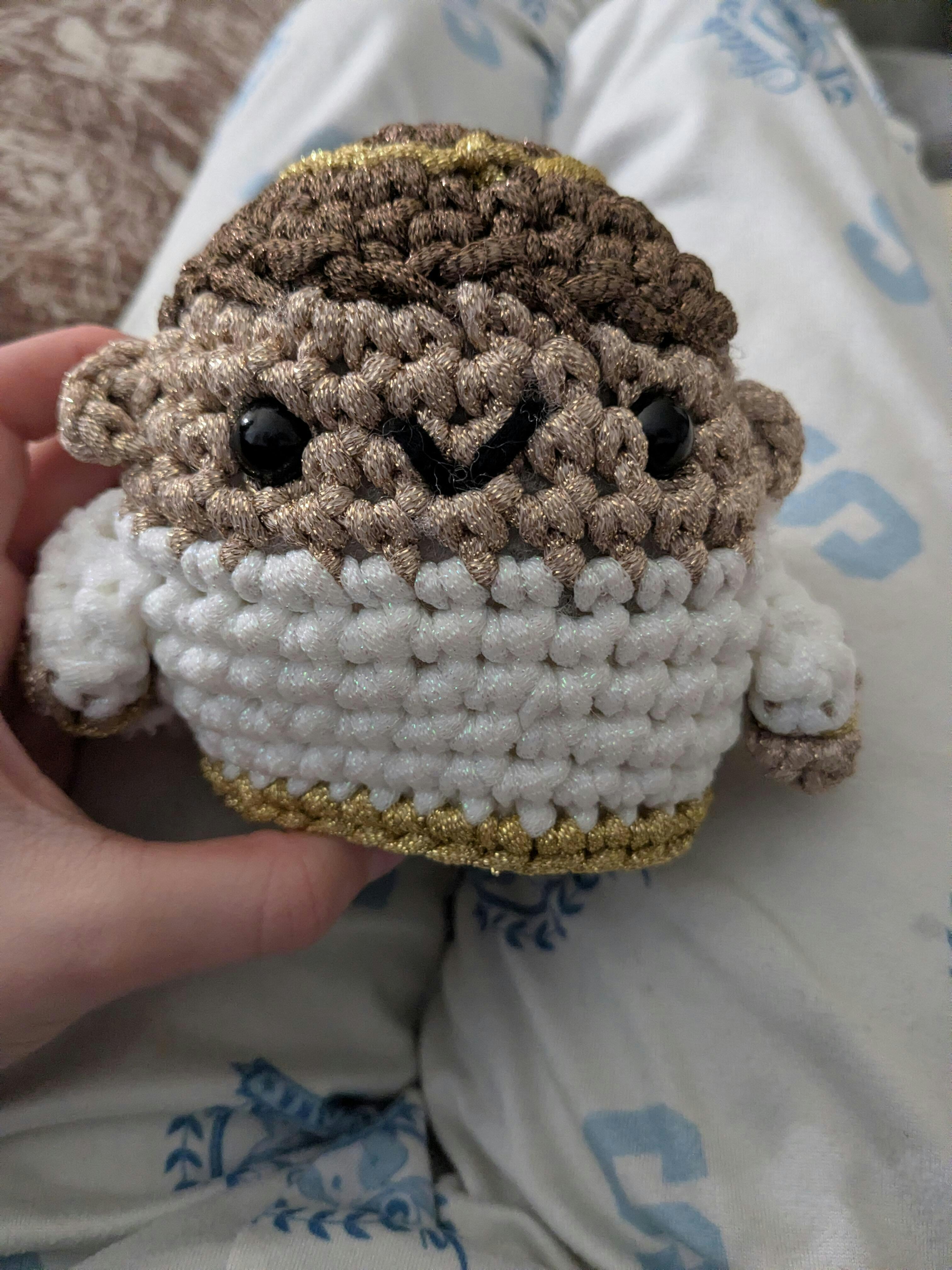 Cue the harps and polish your halo, ’cause Claire the Angel has descended into the Woobleverse! Blessed with plenty of glitter yarn and a glittery custom hook, this friend’s sweet smile will make you feel downright divine.