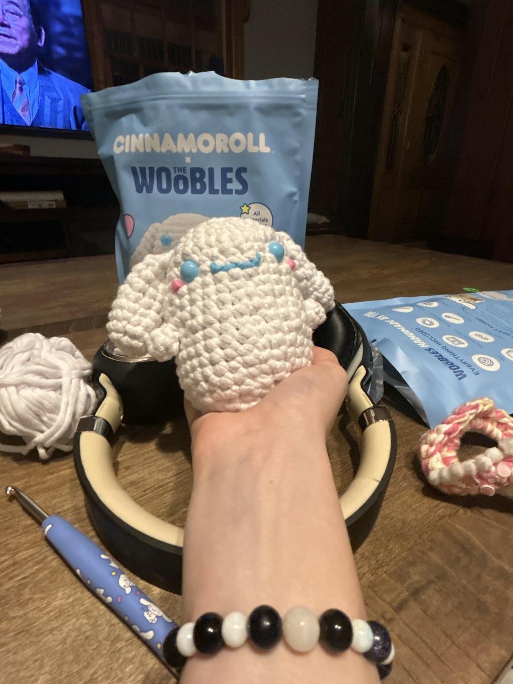 I love this soo much it was my first time crocheting the hook is super cute the packaging is so cool I was able to make a scrunchie with the things I learned and the Cinnamoroll is so cute and they even give me a freebie accessory Slayy and I will make them after