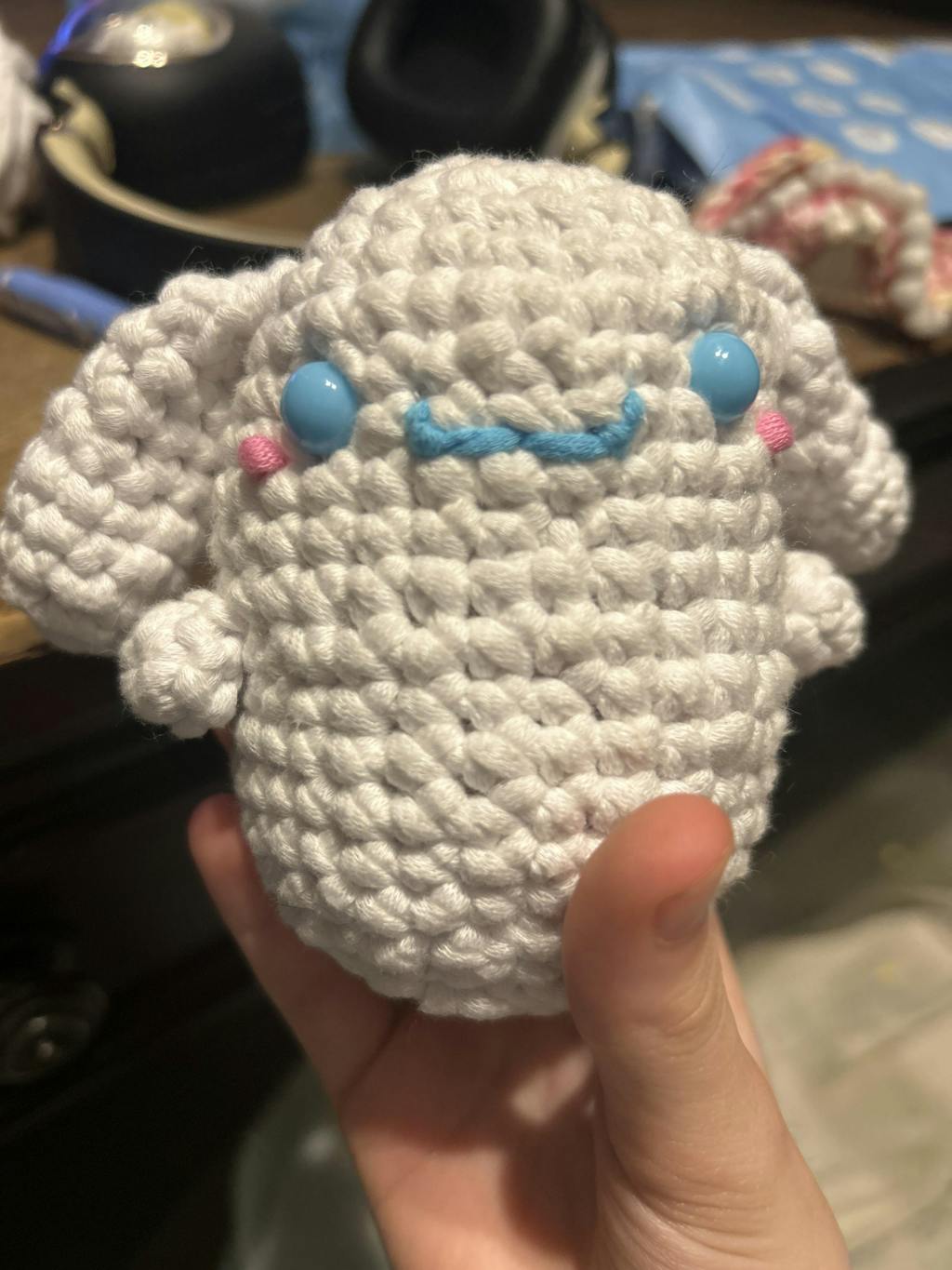 I really think the Cinnamoroll was a cute Wooble! I think it turned out pretty good. The only thing I had trouble on was embroidering the smile. Even though it took me a while to make, I still enjoyed making it!