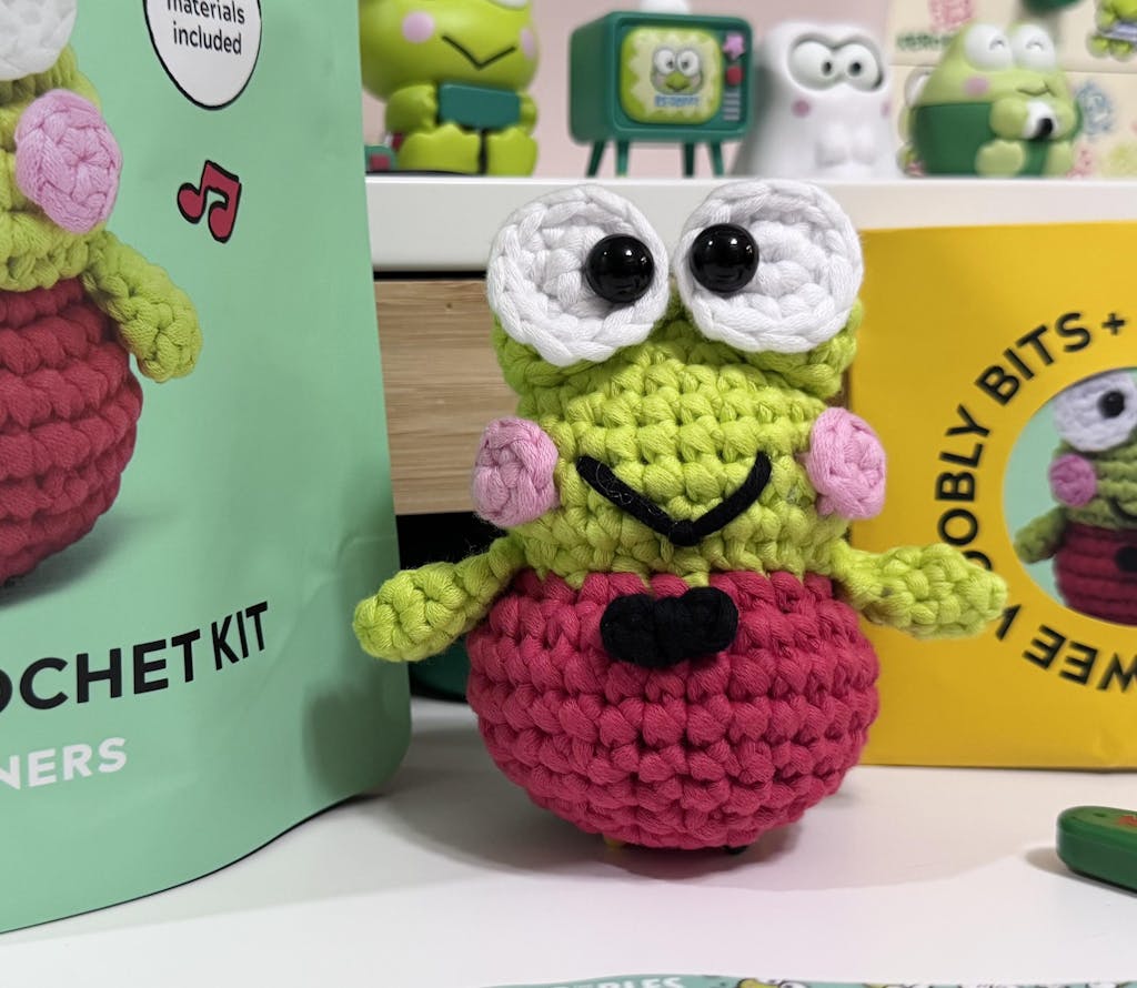 As a Beginner kit, Keroppi makes it easy for even newbies to hop right in and start wooblin’. Plus with the help of our Easy Peasy Yarn™ and step-by-step videos, you’ll quickly leapfrog over any snarls or snags. So grab your hook and hop to it as we bring this pond-erful new pal to life!